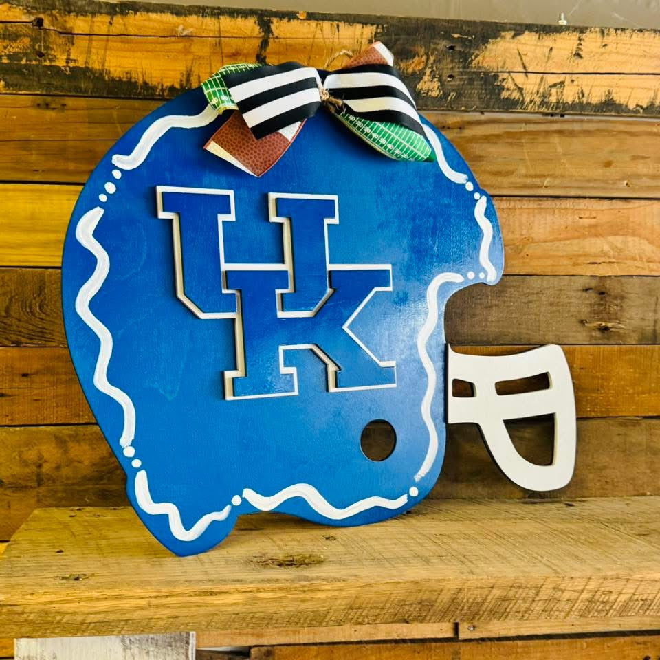 Blue and White Wildcats Football Helmet Door Hanger